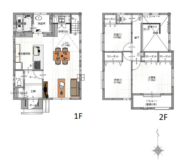 | 備考 | 建築確認番号/第2019SBC-確02532H号 間取詳細/1F:LDK21帖 2F:洋間7.5帖、6.5帖、4.5帖 ※図面と現況が異なる場合は、現況優先とします。 ※販売価格に家具雑貨等の備品は含みません。 |