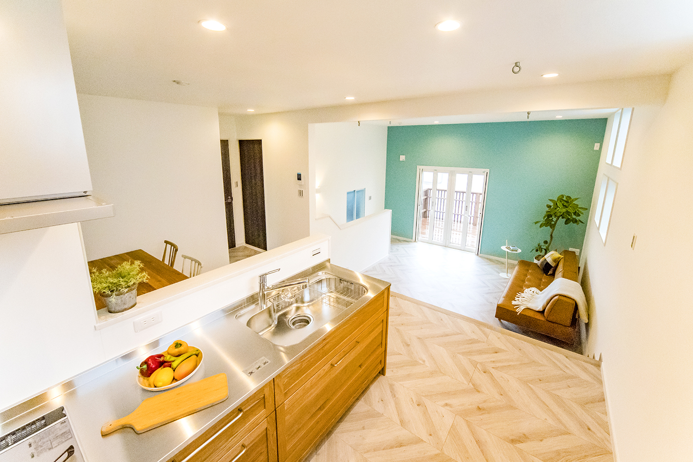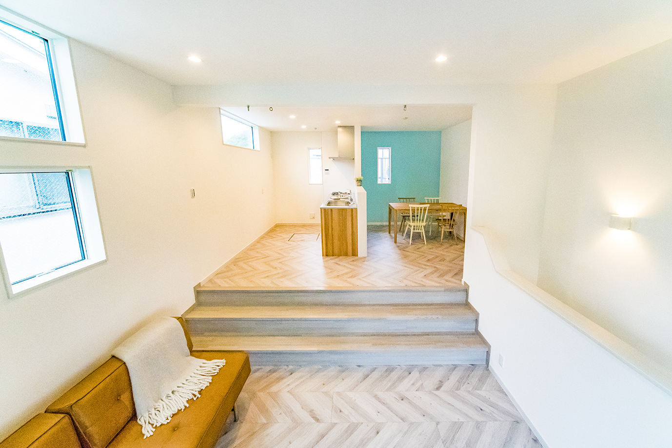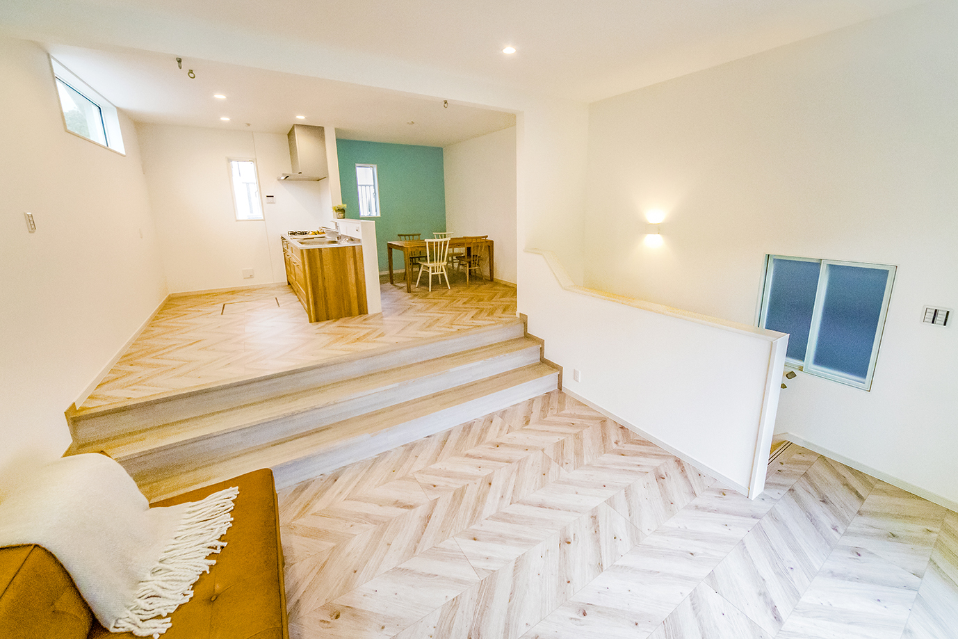 ずらして立体的に空間をつなぐスキップフロアは、リビングを中心にゆるやかな段差でフロアが繋がっています。
