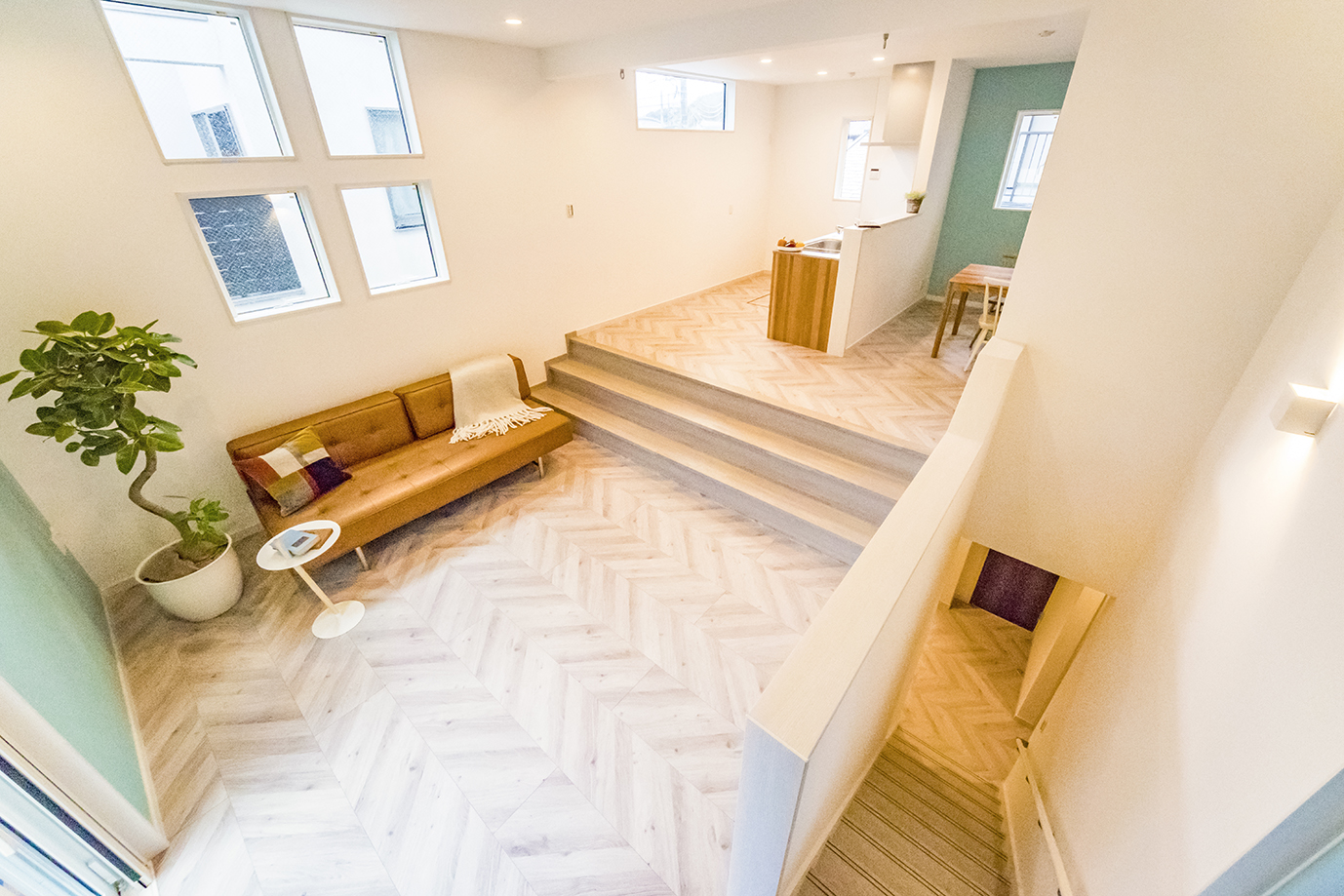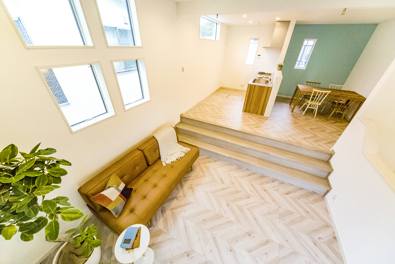 生活上手な北欧スタイルがお手本です。 建物はコンパクト、生活空間はワイドという理想を実現しました。床の高さを半階ずつ